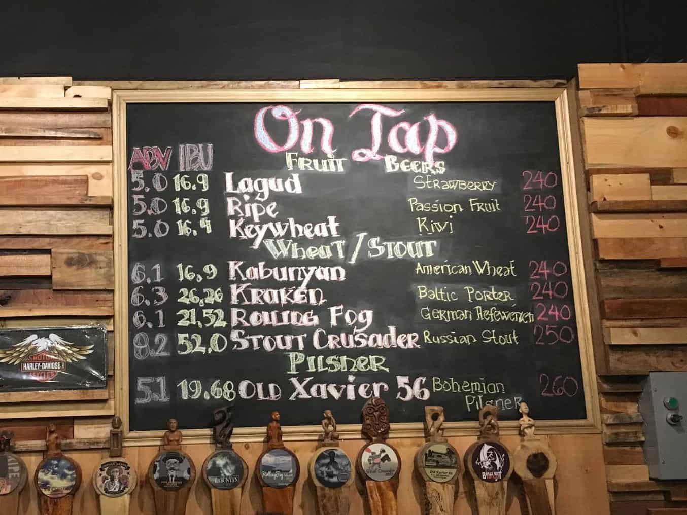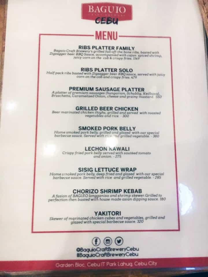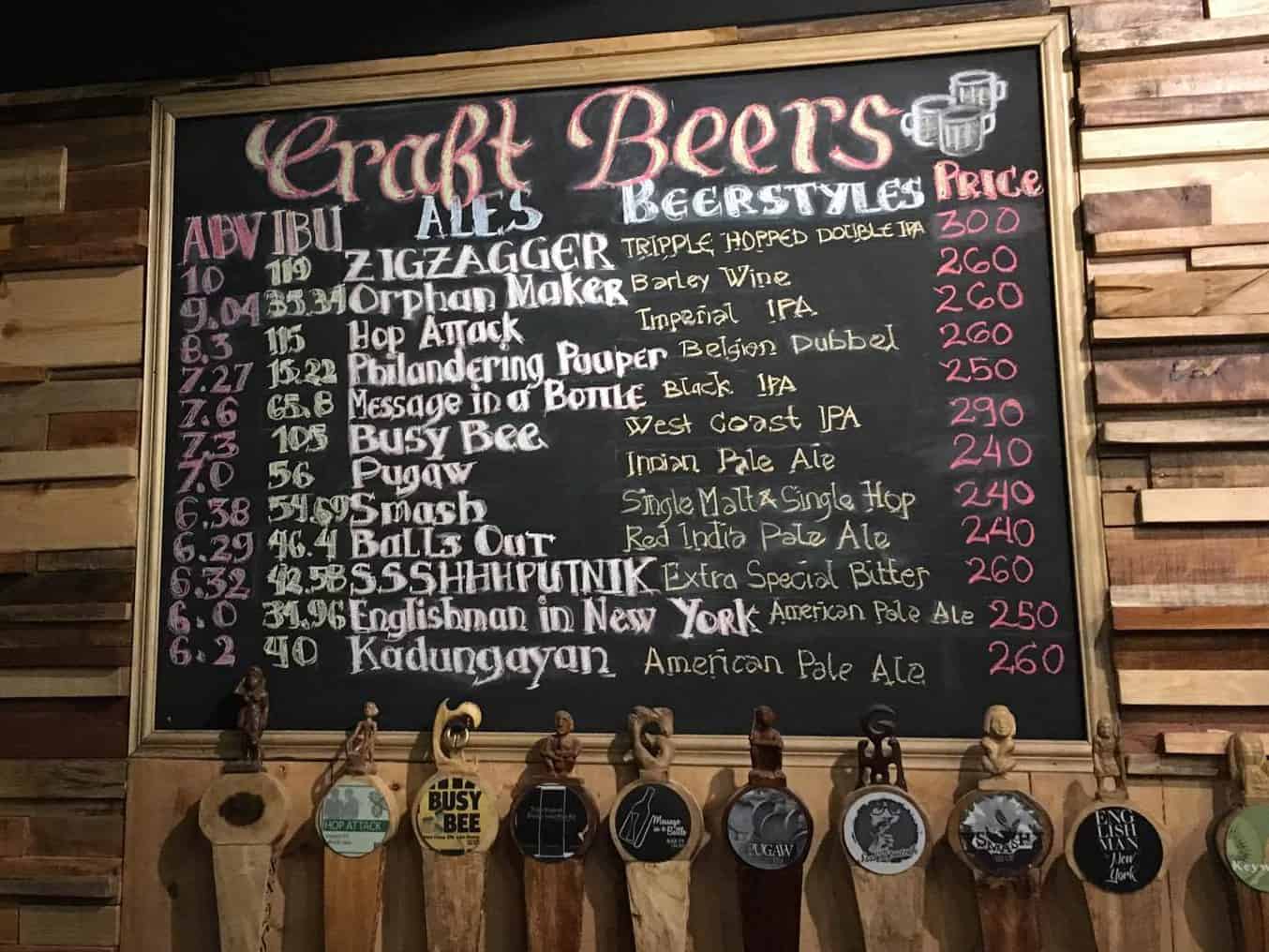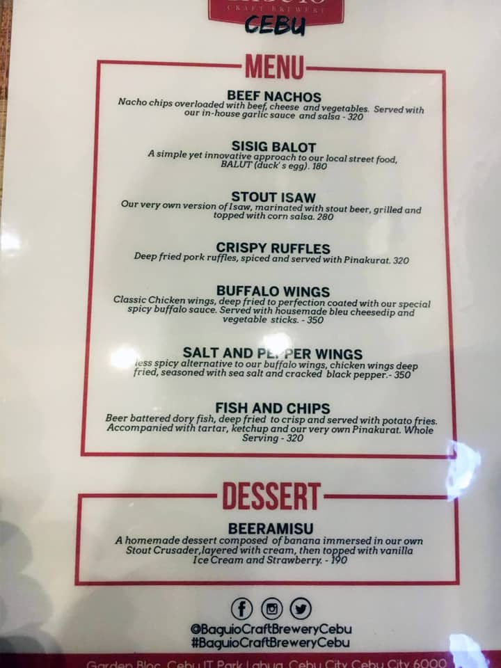 BAGUIO CRAFT BREWERY MENU: