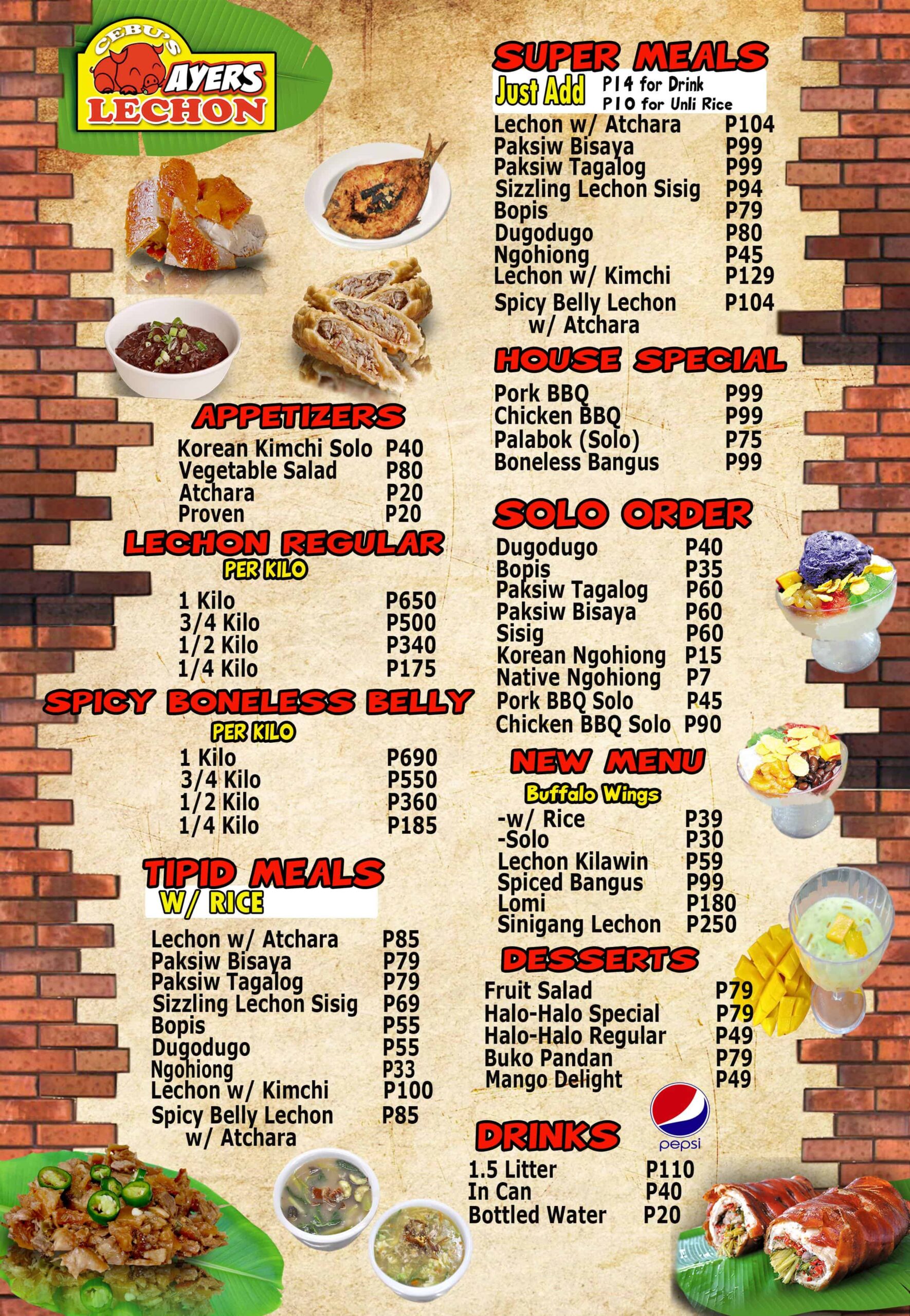 Aside from the regular and spicy lechon, other best-sellers include Sizzling Lechon Sisig, Dugo-dugo, Paksiw, Prichon, and the new Lomi and Sinigang Lechon.