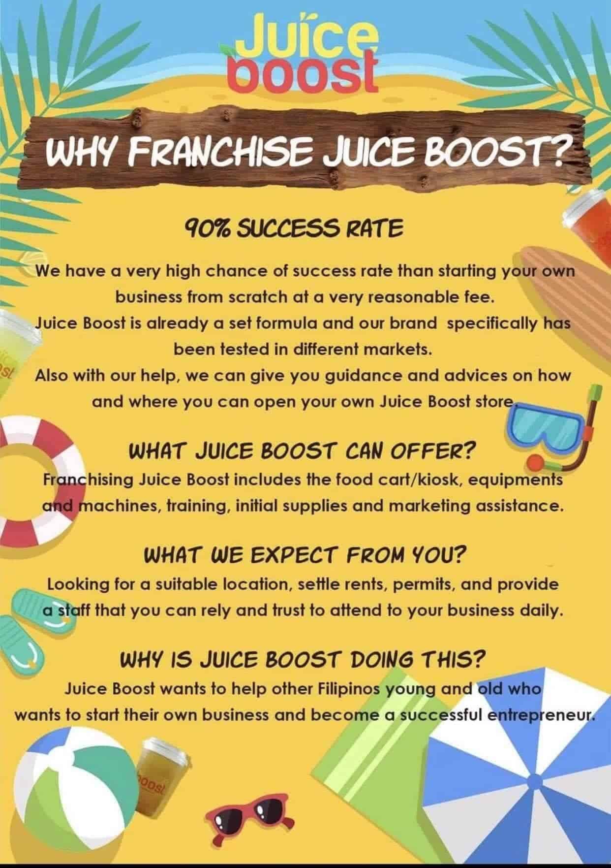 One of the most successful franchises for refreshments, Juice Boost is now serving in more than 10 branches nationwide with 7 stores scattered around Cebu.