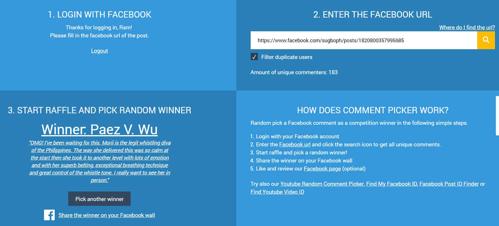 Please message us on Facebook before 11AM tomorrow (July 13) – otherwise we’ll raffle another one tomorrow afternoon. You are the only authorized person (reflecting the announced name) who can discuss with us on how to claim your tickets. Congratulations! ;)