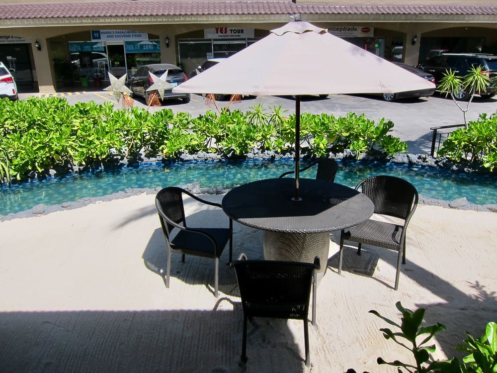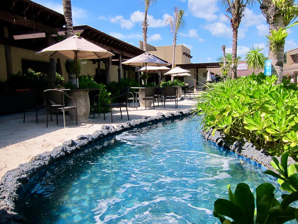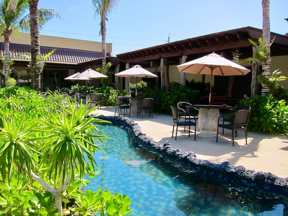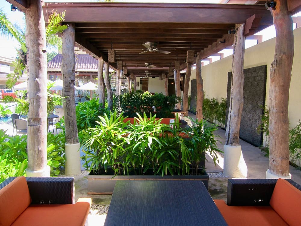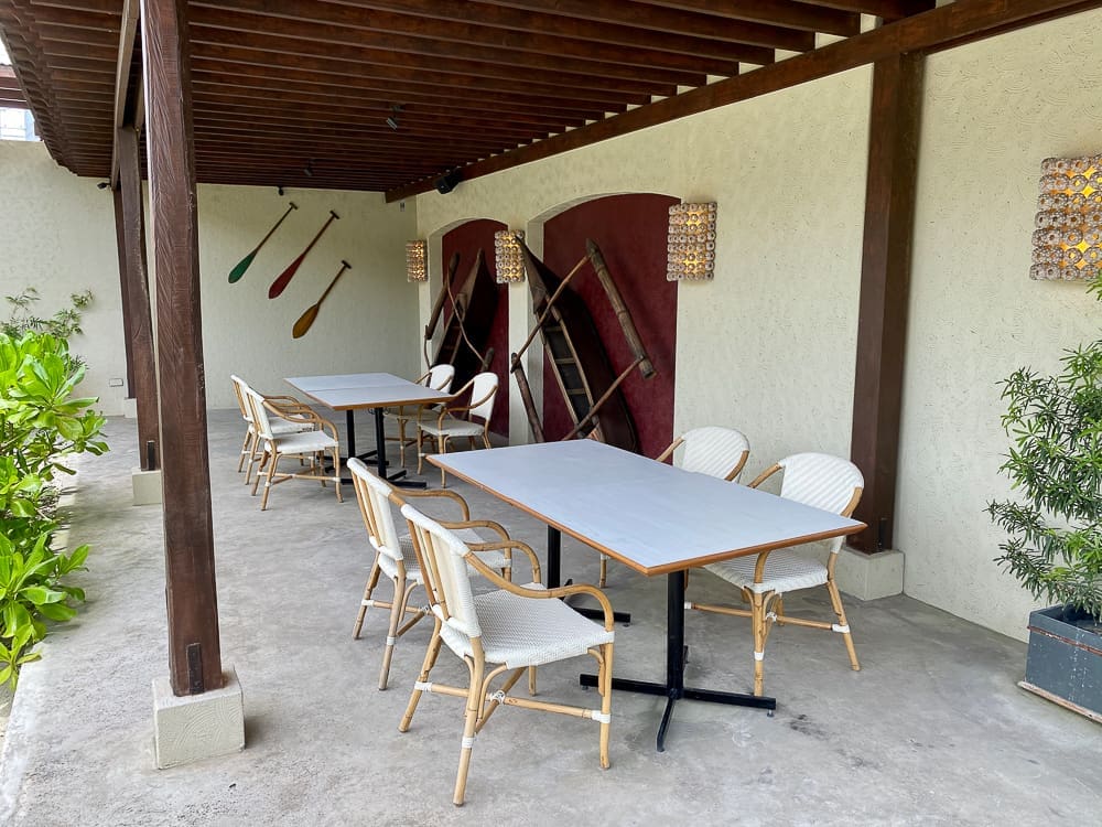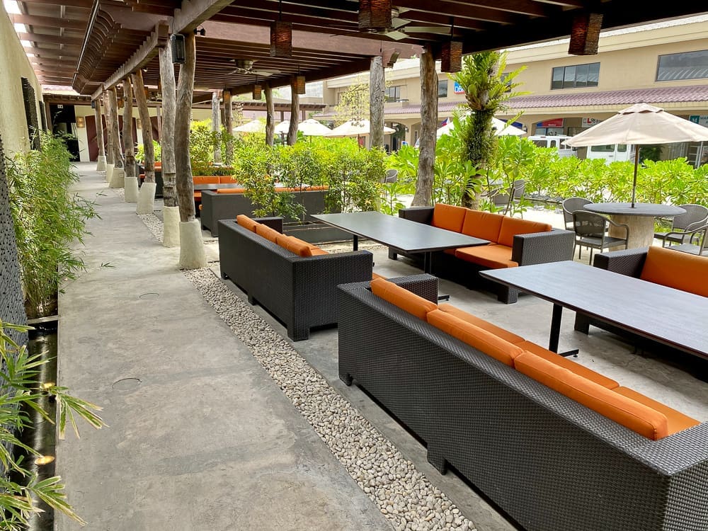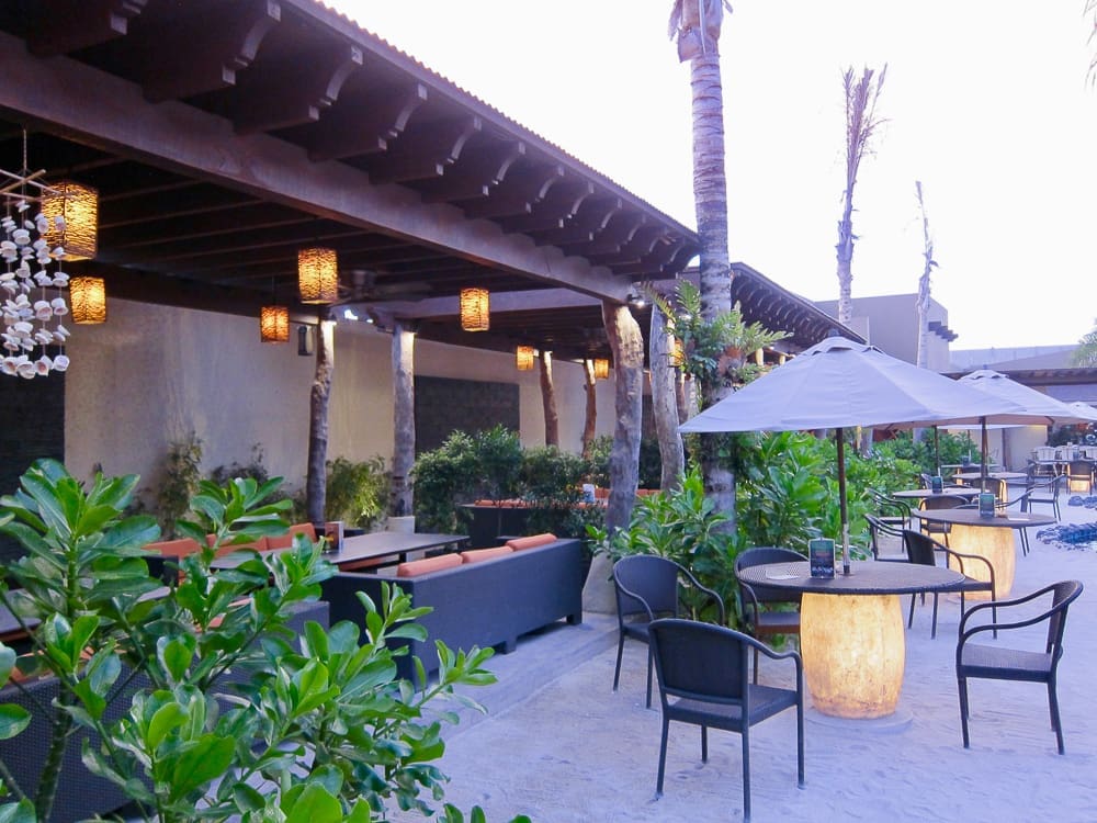 The outdoor dining area is made more exciting with you being transported to the beach as soon as you step out. They have sand, outdoor lounging couches, beach umbrellas, and water features that give off the whole relaxing beach vibe while enjoying your meal.