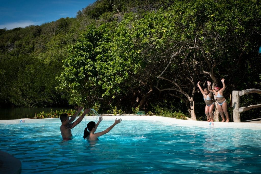 The whole place is decorated with white and blue, from accents, details, up to the walls. The white and blue exterior and interior are very inviting. Issa’s Haven also prides itself with its pools. What’s unique about Issa’s Haven is that it has a pool within the pool.