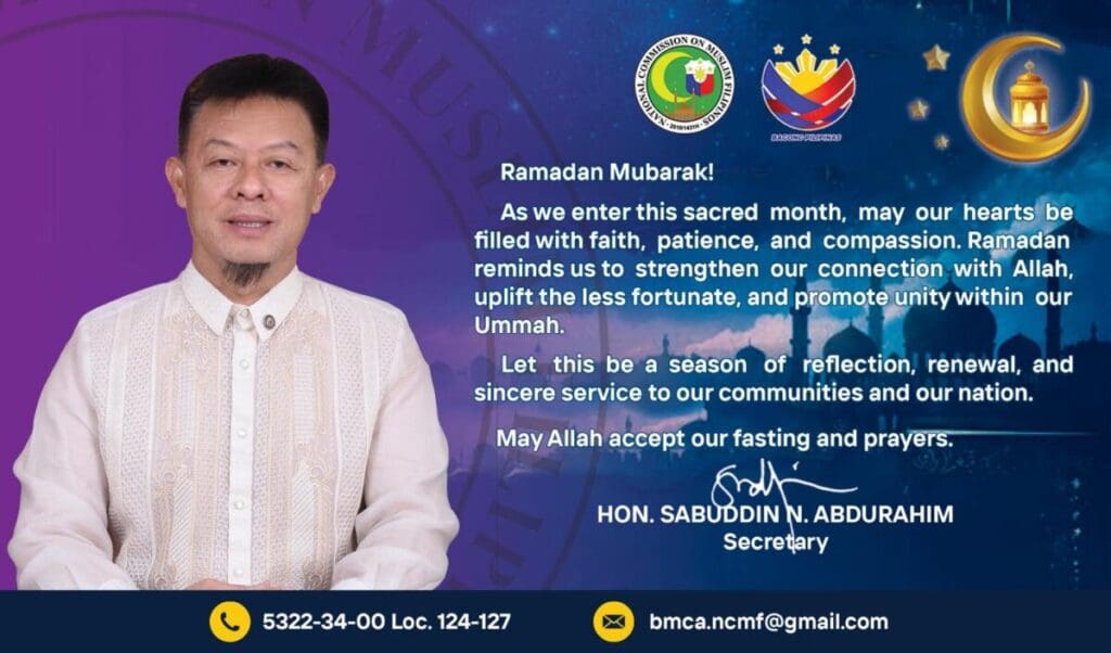 The National Commission on Muslim Filipinos, through Secretary Sabuddin Abdurahim, also extended greetings to Filipino Muslims. He described Ramadan as a sacred period that strengthens faith through patience, compassion, and sincere devotion. He encouraged communities to uplift one another and walk together in unity and peace. The message underscored the importance of solidarity during this time of prayer and reflection.