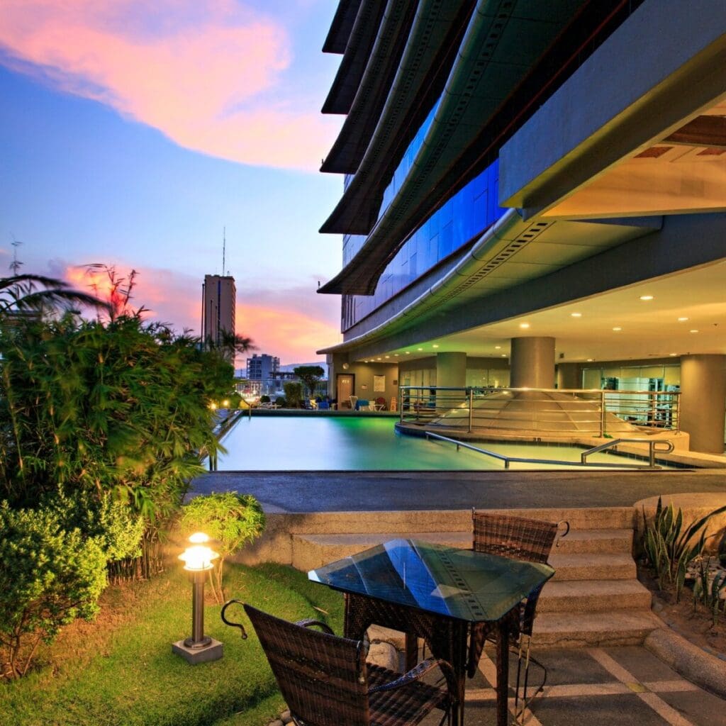 Quest Hotel offers a modern and approachable setting on Archbishop Reyes Avenue with polished service. Couples can enjoy the Valentine’s buffet at Pusô Bistro for ₱1,450 net per person or the poolside “Two Hearts, One Table” five-course dinner for ₱3,500 per couple. The hotel blends elegant interiors with relaxed comfort for a memorable romantic night.