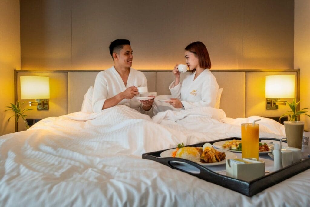 Cebu Parklane International Hotel combines comfort with convenience in the heart of Cebu City. Options include a dinner buffet at ₱1,300 per person, a Valentine’s Day set menu at ₱2,200 per couple, or a deluxe package with overnight stay and breakfast for two at ₱6,000 net as of writing. It offers flexible options for couples seeking city-center romance.