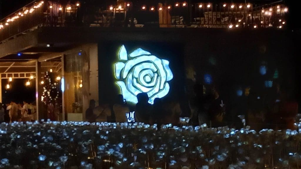 Take the perfect sip of coffee while gazing at the glowing white roses at the 10,000 Roses Cafe.