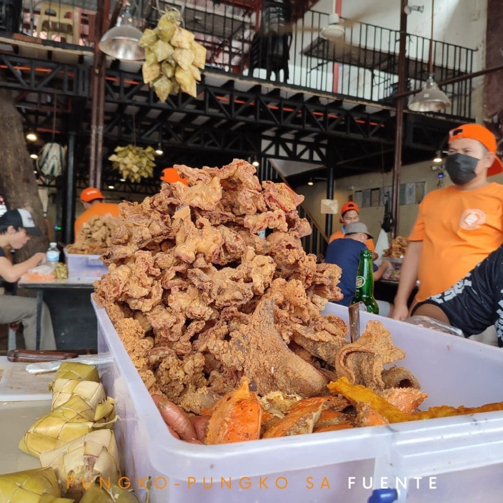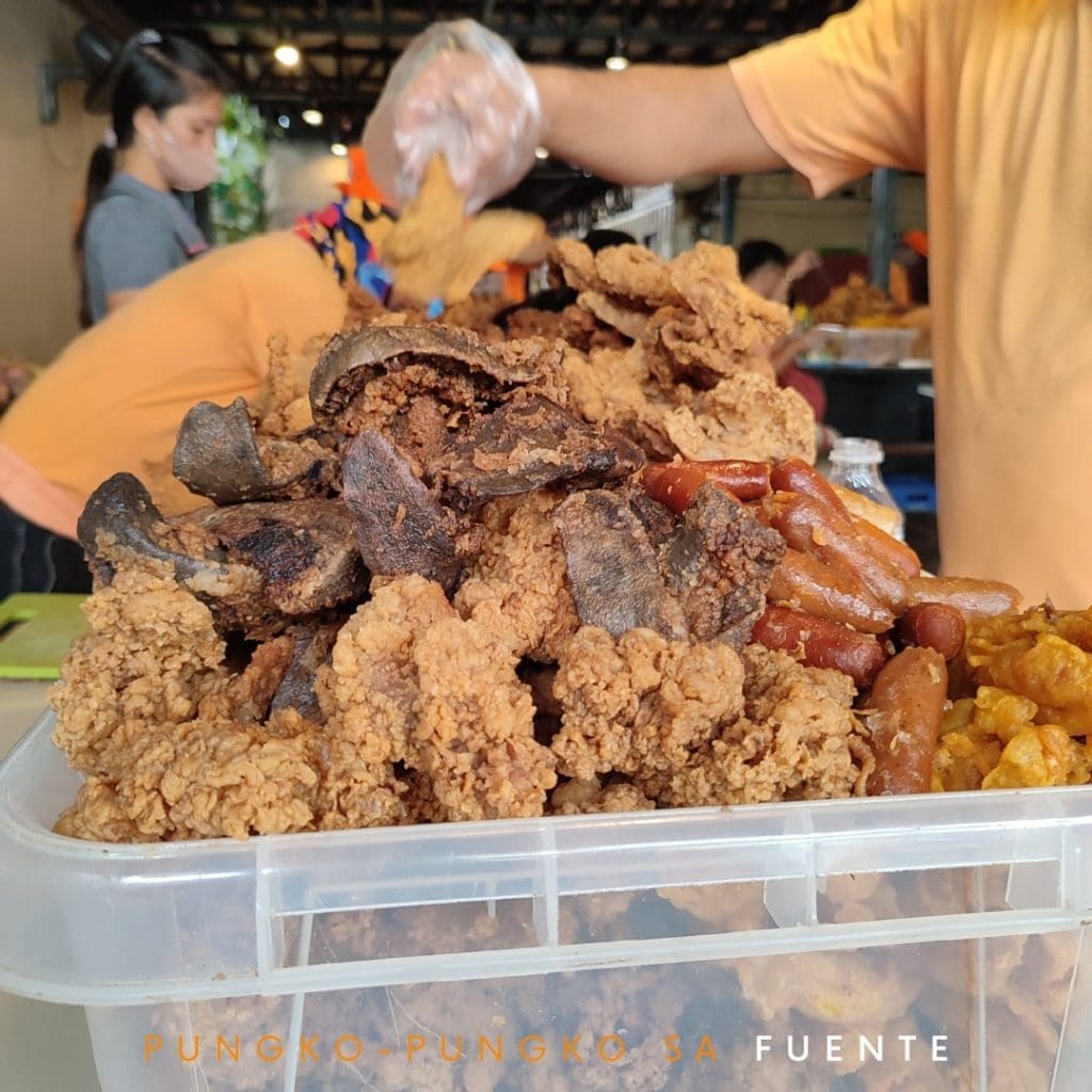 Another Sugbo Street food staple is Pungko-pungko sa Fuente. The highlight of Pungko-pungko sa Fuente is the chicharong bulaklak or Ginabot in Cebuano. The place lets you have a unique experience just like how the fried foods are served in a huge plastic container.
