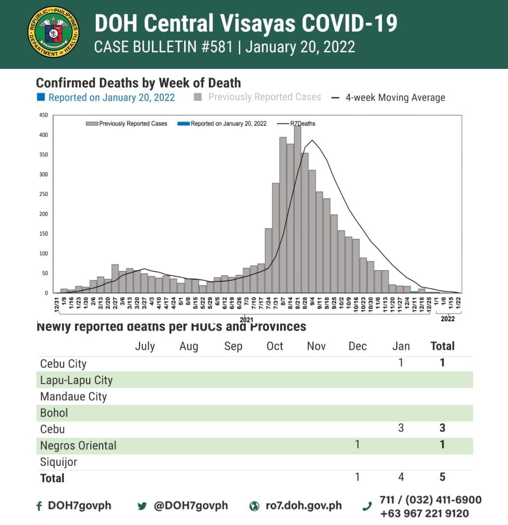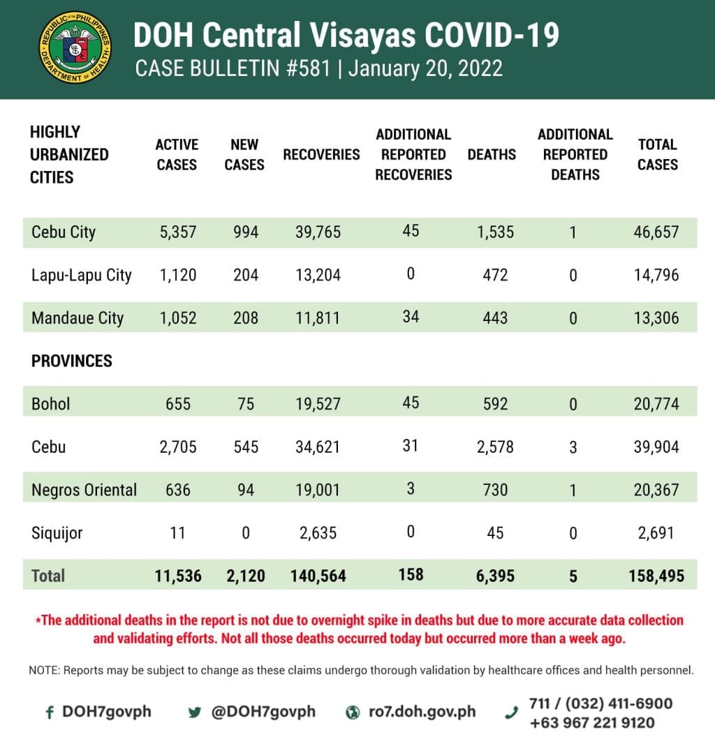 On Thursday evening, the Department of Health Central Visayas (DOH-7) released its official, consolidated data of the COVID-19 cases in the region as of January 20, 2022.