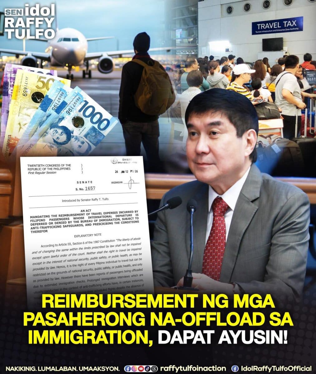 The measure recognizes the Bureau of Immigration’s role in enforcing laws and preventing human trafficking. At the same time, it highlights the need to protect ordinary passengers from undue financial burden. Tulfo said public safety should not come at the expense of basic fairness.