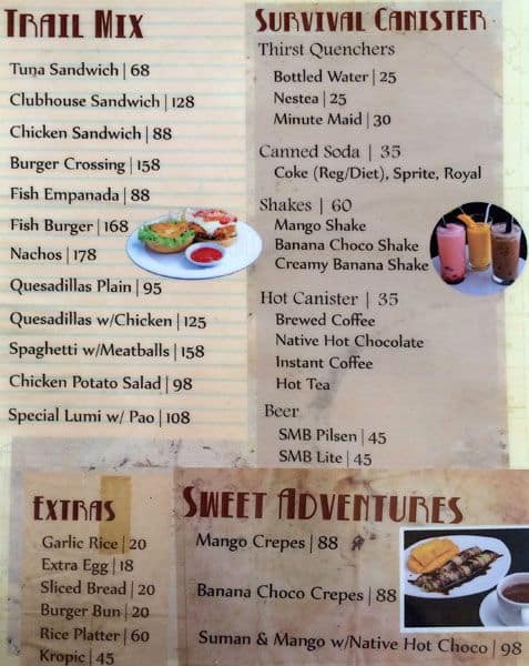 Adventure Cafe Menu: