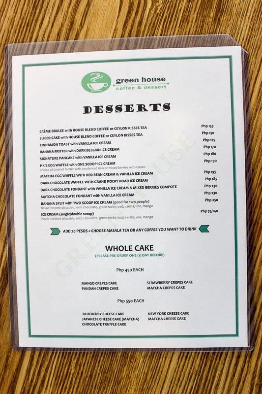 Unique. I must say, this is the word that best describes this café from the place itself to the food they offer. If you need a break from the typical café setting, Green House Coffee and Dessert is here to refresh your senses.