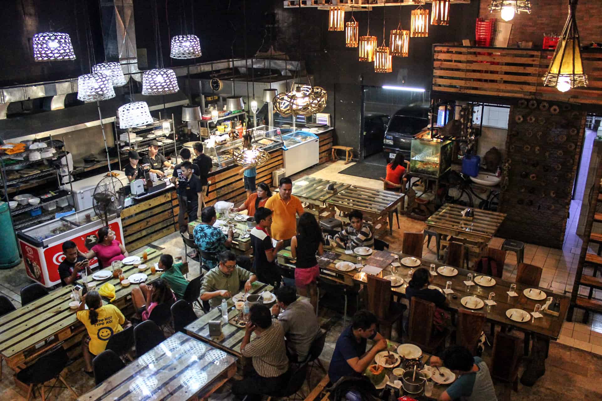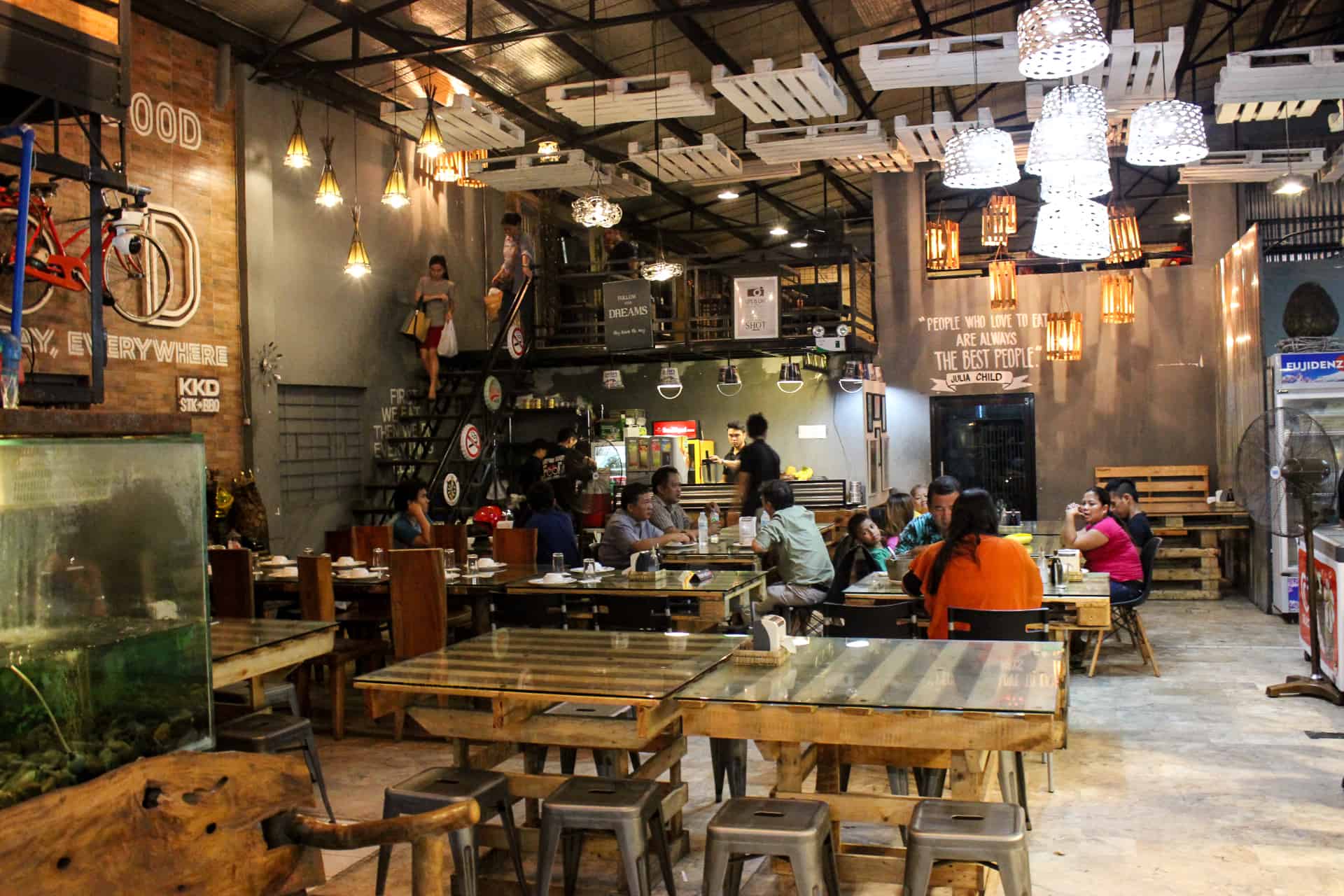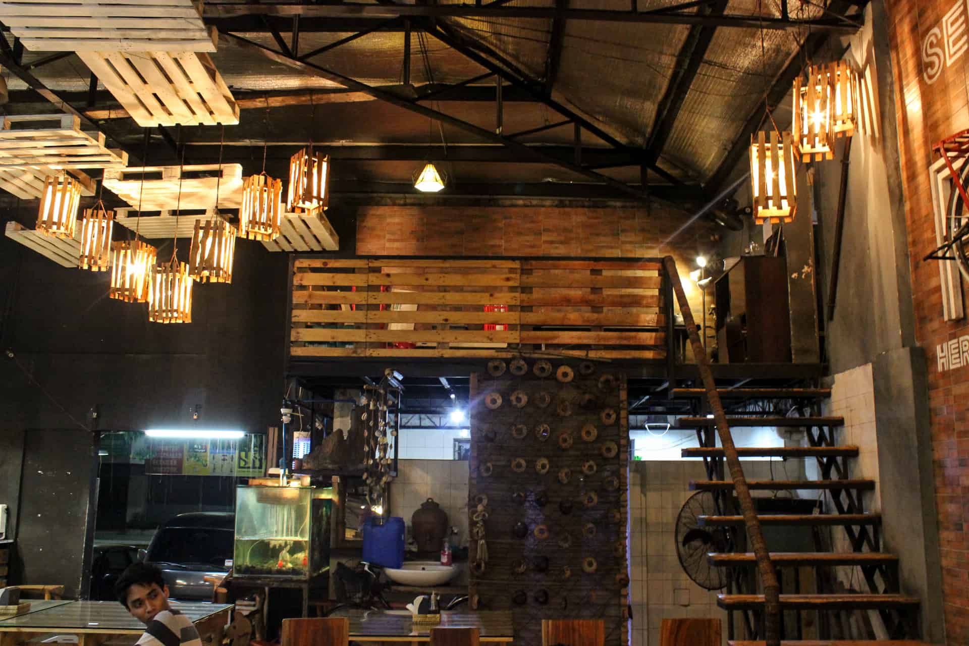 a. DINE: Lasting impressions – Surprised with the intricately-decorated-industrially-designed spacy dining area of the restaurant. The resto is decorated with luxurious chandeliers and precious adornments at first look! Sooner you’ll realize that those are common industrial things like baskets, block of woods, or buckets that we’re just ingeniously put up. But don’t mistake it, the restaurant’s overall look is elegant, people will wonder how they achieved that look. Curious? See it for yourself.