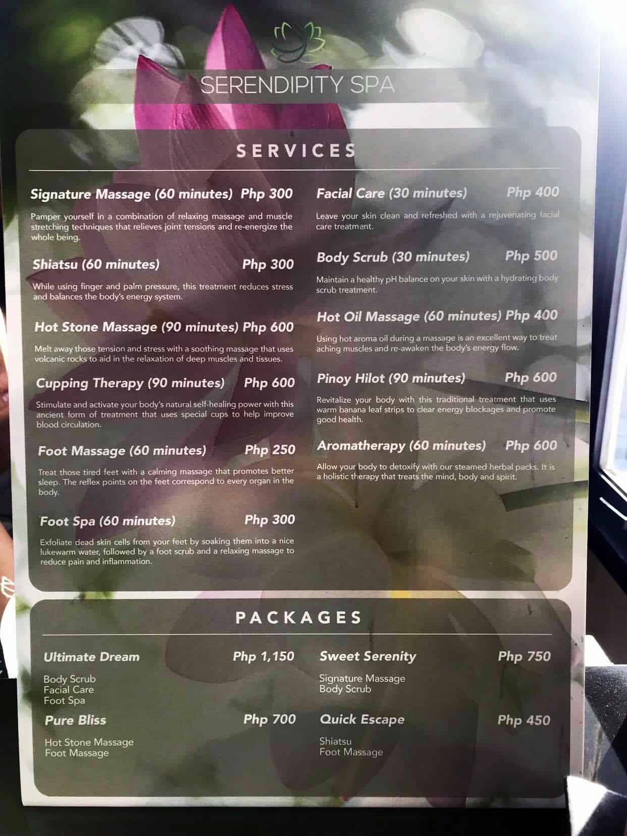 But contrary to how classy the place is, Serendipity Spa offers the same price as most spas in Cebu. For only 300 pesos, you will already experience their superbly satisfying Signature or Shiatsu massage for 1 hour. Now, who says pampering is expensive?
