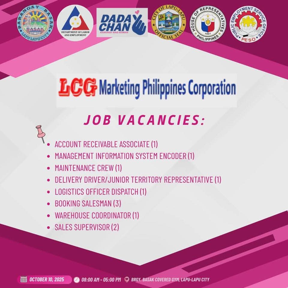 Looking for a new job or a chance to level up your career? The wait is over! The Lapu-Lapu City Government, through the Public Employment Service Office (PESO), is bringing job opportunities closer to home with the PESO Lapu-Lapu – Barangay Basak Job Fair 2025!